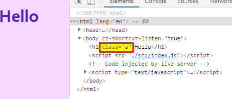 - 한번 클릭 후에는 클래스명이 b도 추가되었고 동시에 설정해두었던 텍스트와 색상이 변경됨
