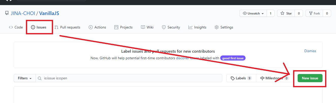 ① README를 업로드할 레파지토리의 Issues 탭에서 New issue 클릭