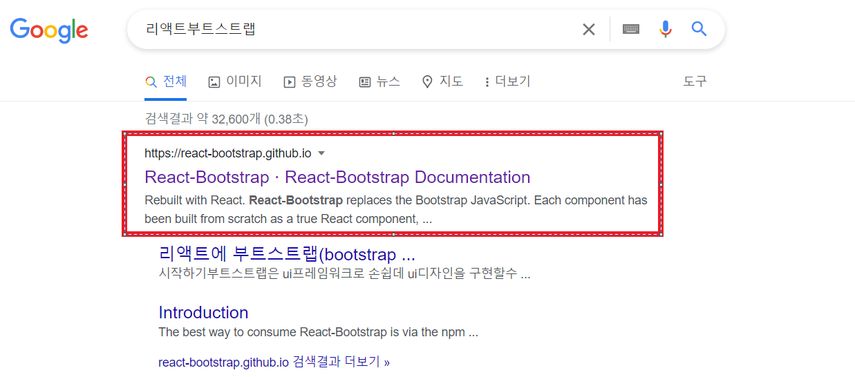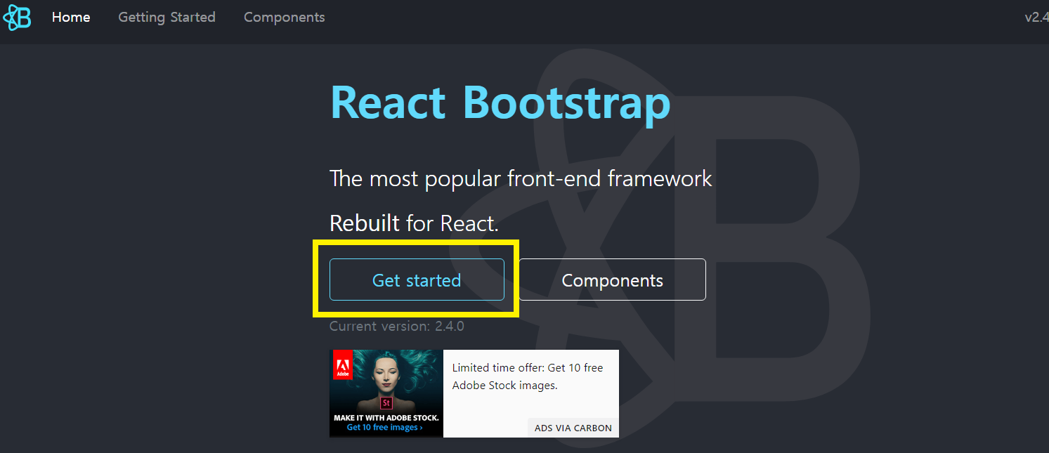 2. 구글에 react bootstrap 이라고 검색해서 나오는 사이트에 들어간다(https://react-bootstrap.github.io/)