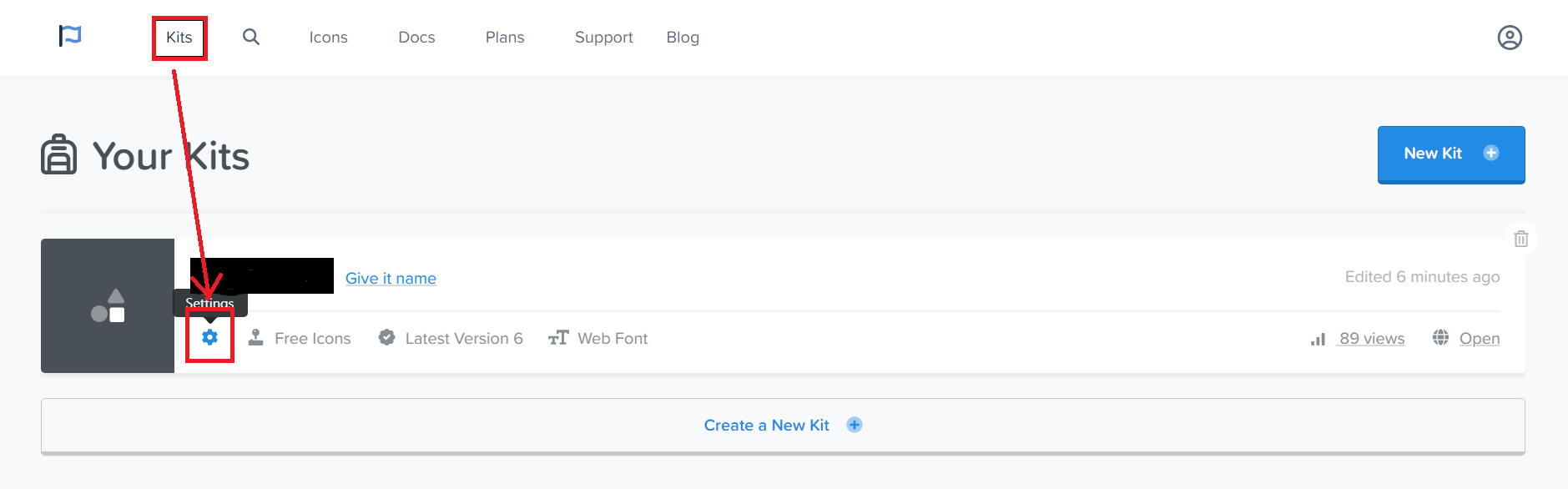 1) 폰트어썸 로그인 후 kit 메뉴 클릭하고 설정버튼 클릭
