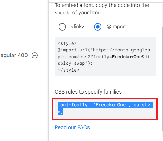 2. @import를 선택하고 @import url('주소');를 복사(<style> 태그는 제외)