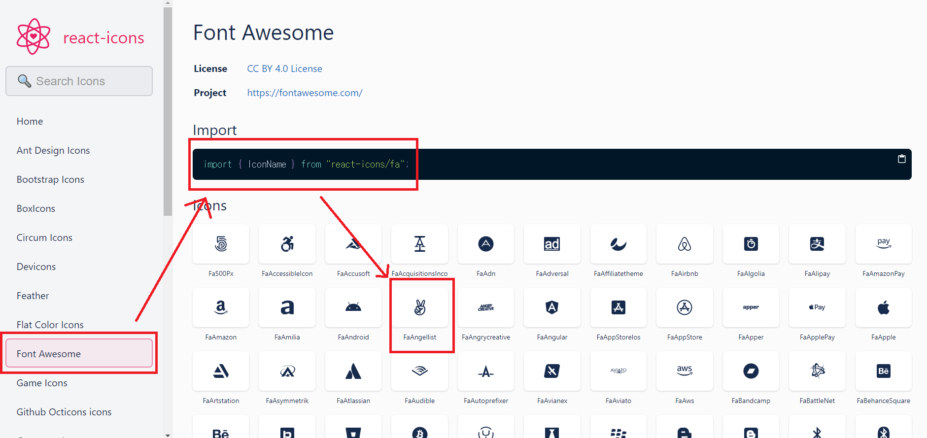 - 폰트어썸은 "react-icons/fa" 이고 IconName 부분에 아이콘 이름(FaAngellist 이런거!)을 넣어주면 됨