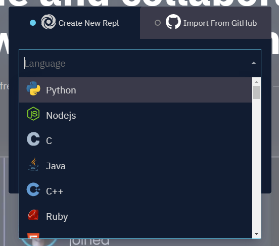 2. 사용하고자 하는 언어를 선택한다. (깃허브도 연동할 수 있는 것 같은데 안해봤음)
