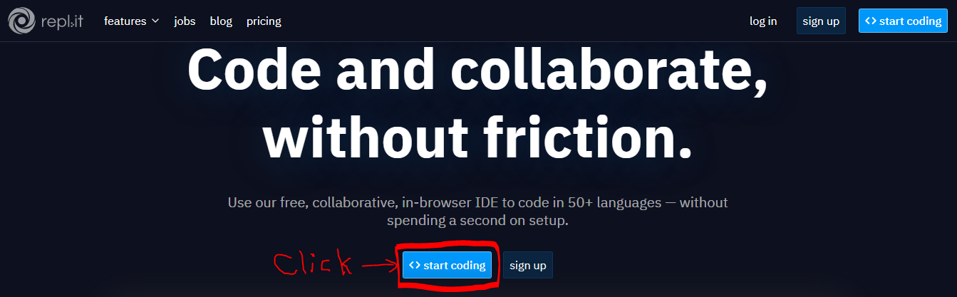 1. 사이트에 들어가서 회원가입을 해도 되고 start coding을 눌러 바로 사용가능하다.