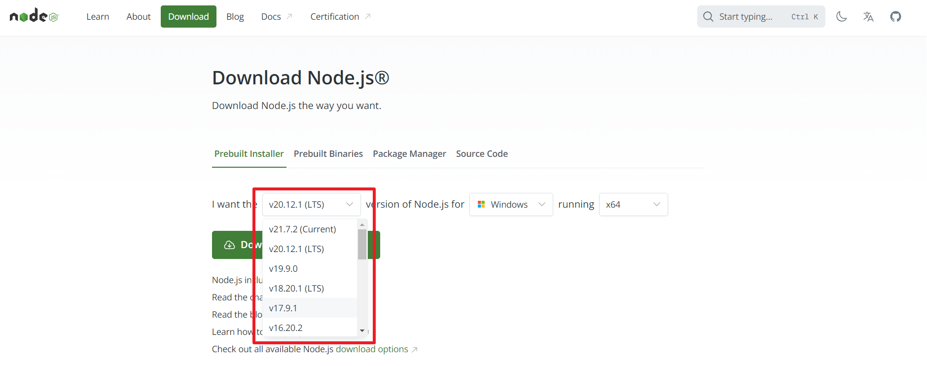Node.js 웹사이트에서 최신 버전을 다운받는 방법