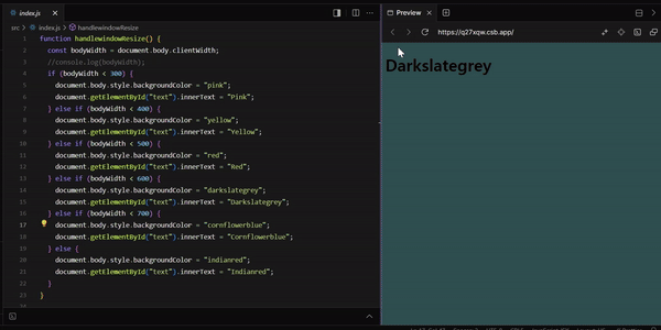 1. 함수 handlewindowResize에 document.body.clientWidth를 이용해 현재의 넓이를 알아내고 범위를 정해준다.