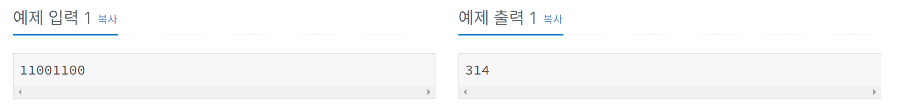 2진수가 주어졌을 때, 8진수로 변환하는 프로그램을 작성하시오.