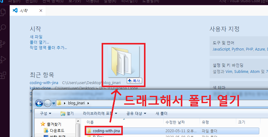 ⑦ Visual Studio Code에서 방금 만든 폴더 열기