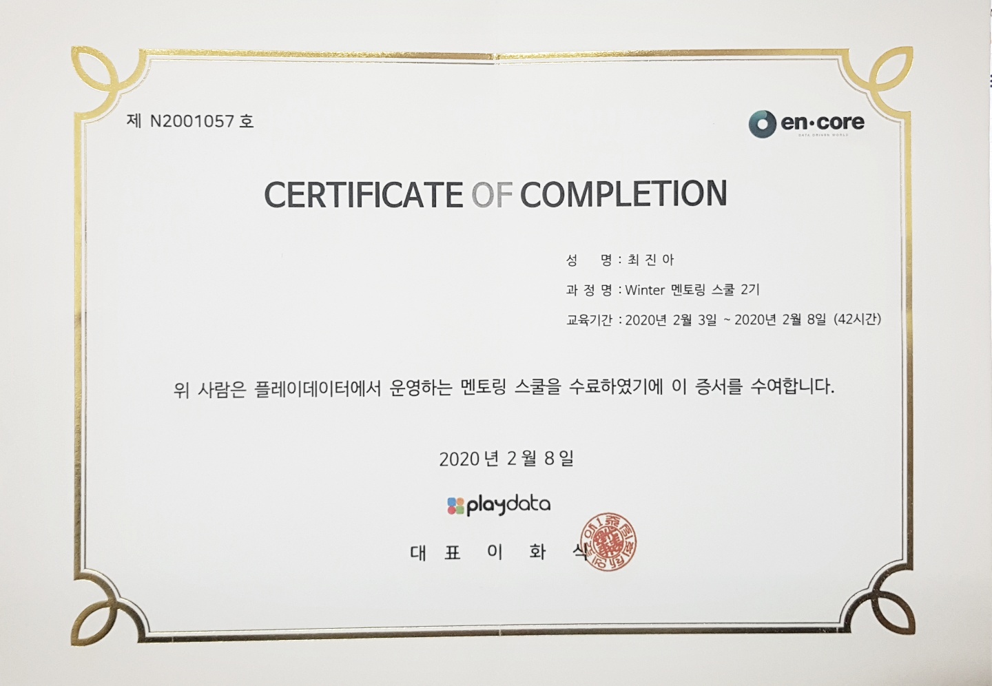 2020년 2월 3일부터 2월 8일까지 6일간 멘토링 스쿨 특강을 들었다.