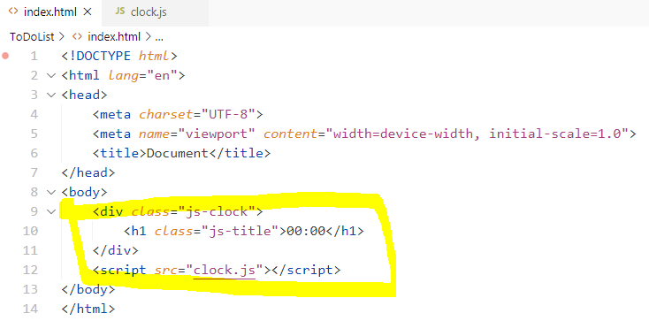 clockContaniner를 생성해주고 거기에 div js-clock를 연결해준다.