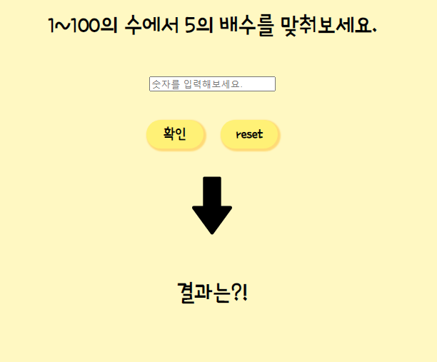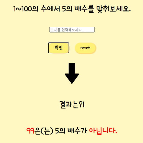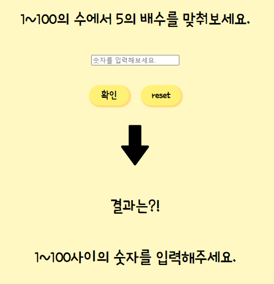 <h1> 1~100의 수에서 5의 배수를 맞춰보세요.</h1>